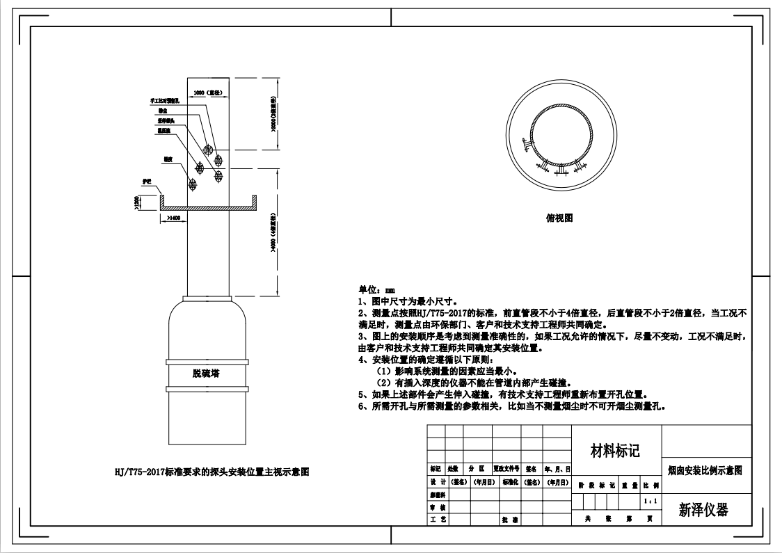 煙氣在線監測設備之煙囪開孔安裝示意圖