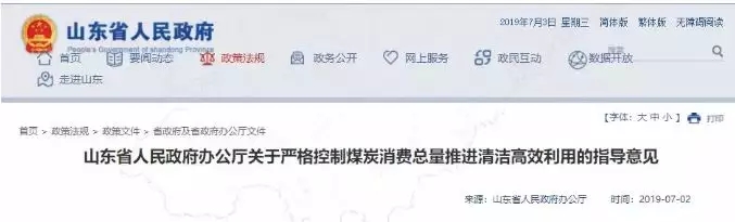 山東省人民政府辦公廳關于嚴格控制煤炭消費總量推進清潔高效利用的指導意見