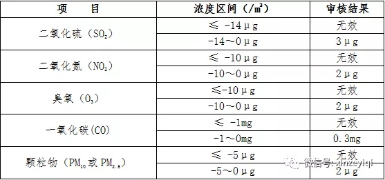 (6)因儀器設備故障、運行不穩定或其他監測質量不受控原因出現的負值和零值,均按無效數據處理。在空氣中各項污染物濃度均處于極低水平的情況下,部分儀器設備小時監測結果出現負值或零值時,需人工判別:在確認非儀器故障的前提下,當監測值超過可控范圍時,按無效處理;當監測值在可控范圍時,應按規定進行修約。處理方式詳見附件中表1。