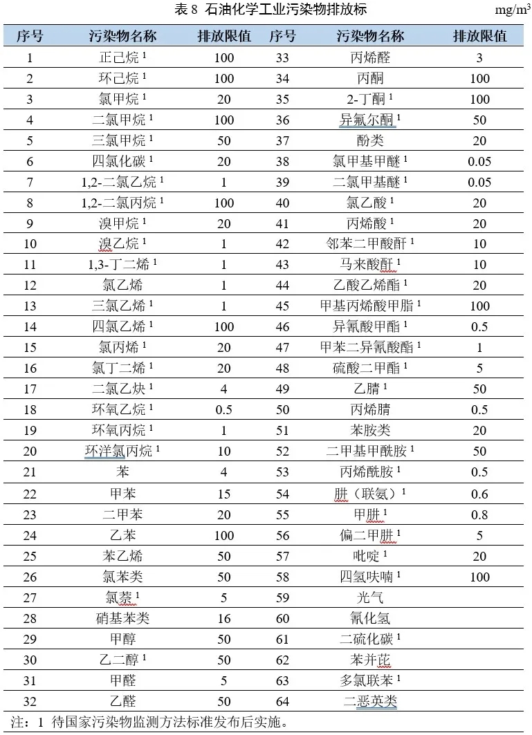 以石油餾分、天然氣等為原料,生產(chǎn)有機(jī)化學(xué)品、合成樹脂、合成纖維、合成橡膠等的工業(yè),執(zhí)行本標(biāo)準(zhǔn)。本標(biāo)準(zhǔn)是當(dāng)前國家排放標(biāo)準(zhǔn)中涉VOC特征因子最多的排放標(biāo)準(zhǔn)。但大多數(shù)因子國家還未發(fā)布相關(guān)檢測(cè)方法。