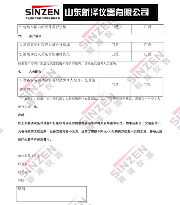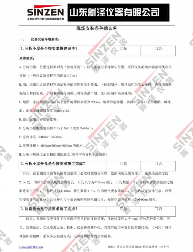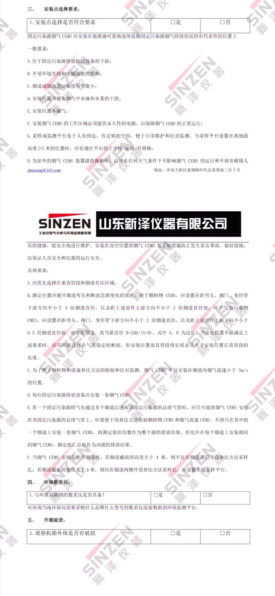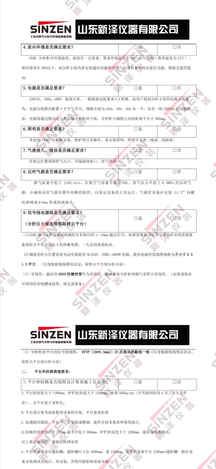 尊敬的客戶您好,首先非常感謝您選購(gòu)我們山東新澤儀器有限公司生產(chǎn)的煙氣在線監(jiān)測(cè)系統(tǒng),山東新澤是一家專注煙氣在線監(jiān)測(cè)系統(tǒng)生產(chǎn)的品牌企業(yè),為了您訂購(gòu)的設(shè)備能夠及時(shí)盡快的安裝投入運(yùn)行,貴公司需要注意以下事項(xiàng)和準(zhǔn)備事宜: