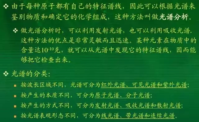 (6)靈敏度高:可利用光譜法進(jìn)行痕量分析。目前,相對靈敏度可達(dá)到千萬分之一至十億分之一,絕對靈敏度可達(dá)10-8g~10-9g。