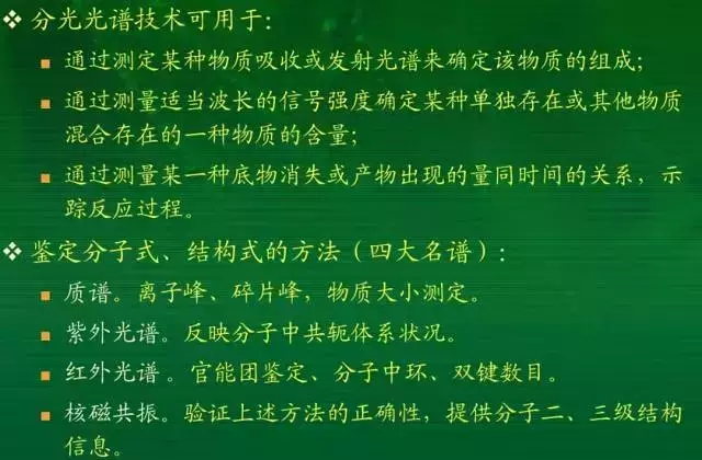 波譜:通常指四大波譜,核磁共振(NMR),物質(zhì)粒子的質(zhì)量譜-質(zhì)譜(MS),振動光譜-紅外/拉曼(IR/Raman),電子躍遷-紫外(UV)。