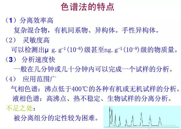 色譜: 是一種兼顧分離與定量分析的手段,可分辨樣品中的不同物質(zhì)。