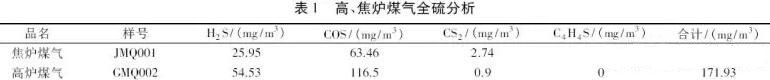 ⑷做好高、焦爐煤氣中全硫份檢測跟蹤工作(表1)。
