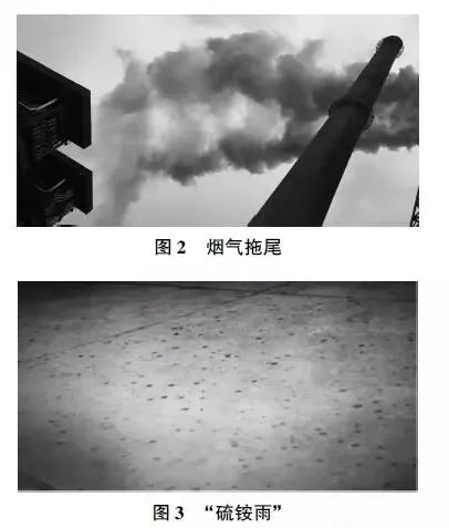 隨著環保排放要求提高后,對氨法脫硫系統進行提高標準操作控制,二氧化硫排放質量濃度可以達到35mg/m3超低排放水平,但煙氣拖尾和“硫銨雨”現象越來越嚴重,煙氣拖尾有時長達數百米,造成的二次視覺污染成為環保的關注焦點,散落的“硫銨雨”對周邊設備造成嚴重腐蝕(見圖2 和圖3)。