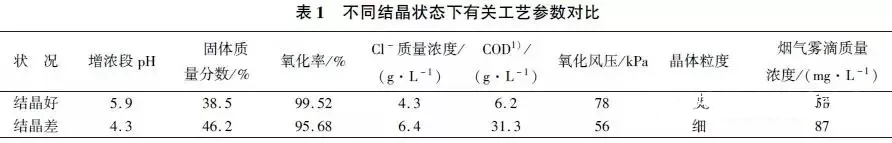 (1)通過多點加氨系統。嚴格控制脫硫液pH為4.5~5.5、增濃段溶液pH為5.2~6.0,為增濃液中硫酸銨結晶創造良好的弱酸性環境。