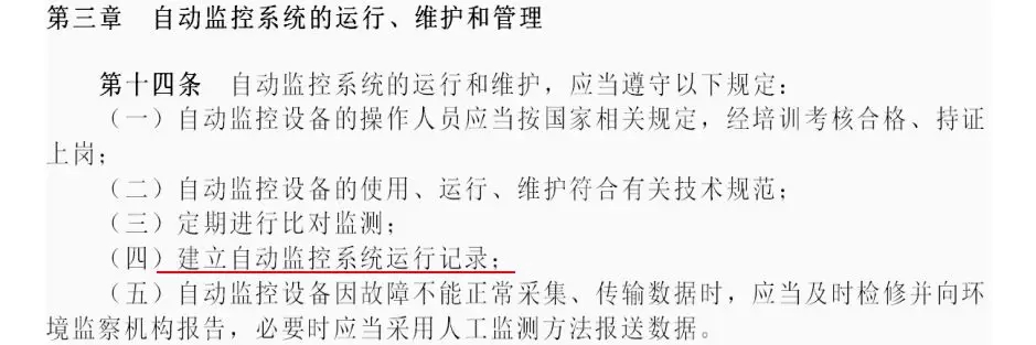 1、《污染源自動監(jiān)控管理辦法》中要求建立自動監(jiān)控系統(tǒng)運行記錄,在線監(jiān)測記錄直接反應自動監(jiān)控系統(tǒng)運行情況。