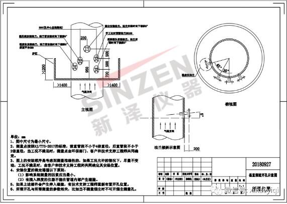 CEMS煙氣在線監測設備的垂直煙囪開孔示意圖